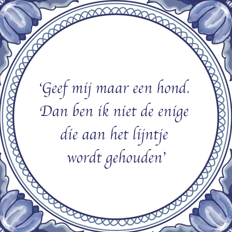 12. ‘Geef mij maar een hond. Dan ben ik niet de enige die aan het lijntje wordt gehouden’