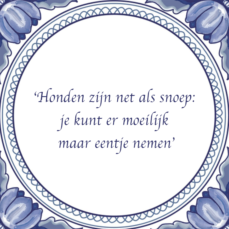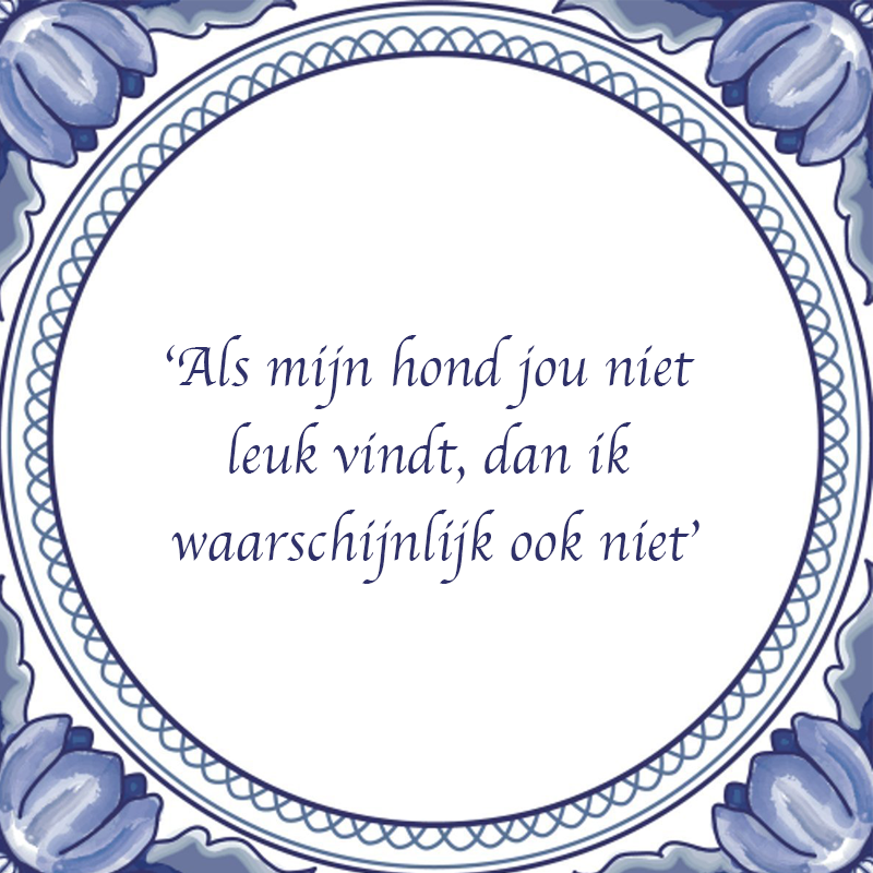 We horen ze regelmatig: leuke uitspraken van hondenbaasjes over honden. En die verdienen eigenlijk allemaal wel een tegeltje. We hebben de leukste en meest herkenbare voor je op een rij gezet. In een tegeltje uiteraard.