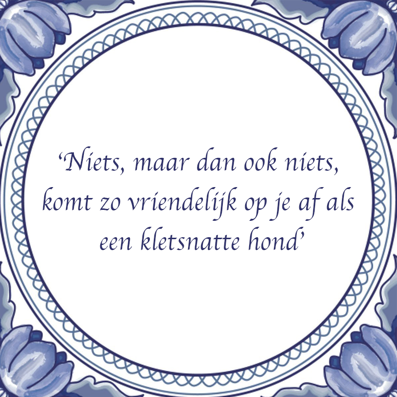 2. ‘Niets, maar dan ook niets, komt zo vriendelijk op je af als een kletsnatte hond’
